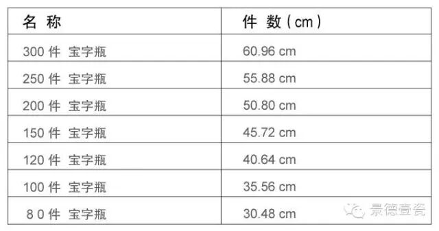 就拿宝字瓶来举例吧,景德镇瓷器规格标准 (1975年 )是这么规定的: