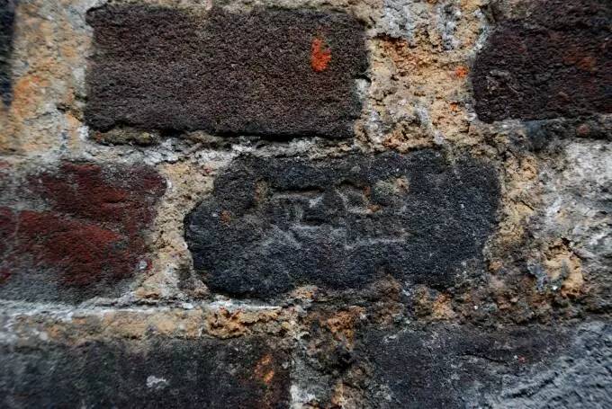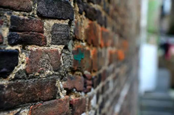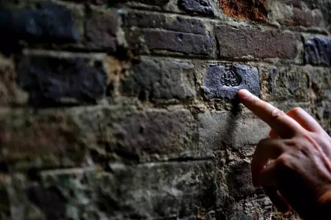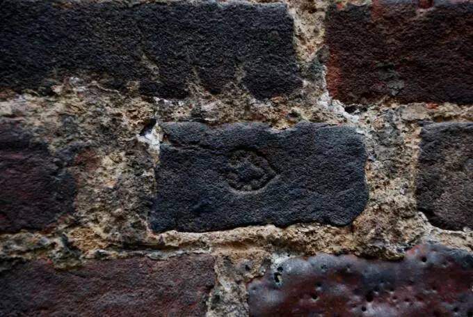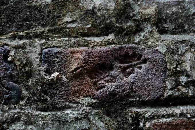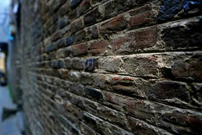 若仔细看,会发现这些砌在墙上的窑砖上还有许多符号。据里弄里一些略知历史的人说这些釉斑、图形、文字、印章等都是当时的大窑户刻下的标记,非常特殊,而今,只剩下少数斑驳的窑砖墙,经过上百年历史,有的墙上还长满了青苔。经过窑火历炼,被颜色釉熏染过的窑砖呈现出深浅不一的七彩色调。深深幽巷,更让人生出感慨。